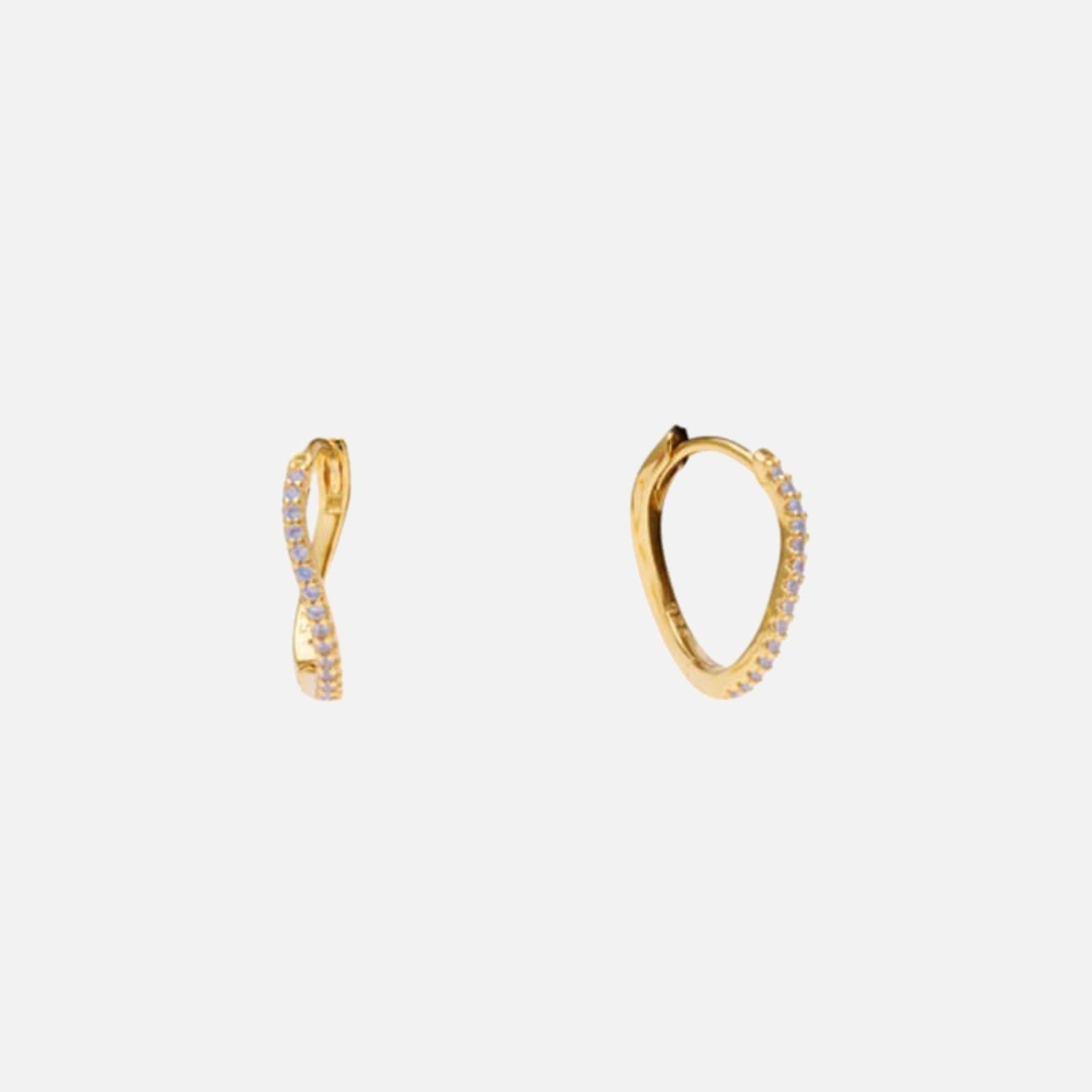 Amelia Crystal Huggies fra Pico Copenhagen. Amelia er et par elegante, små creol øreringe med funklende krystaller og en smuk bølget form. Brug dem alene eller match dem med et par ørestikker med krystaller for et gennemført look.